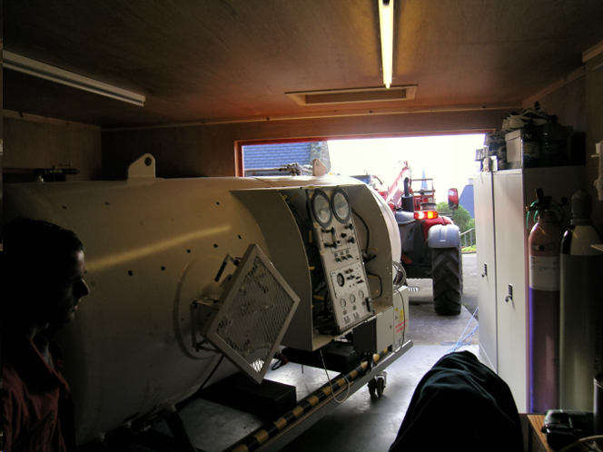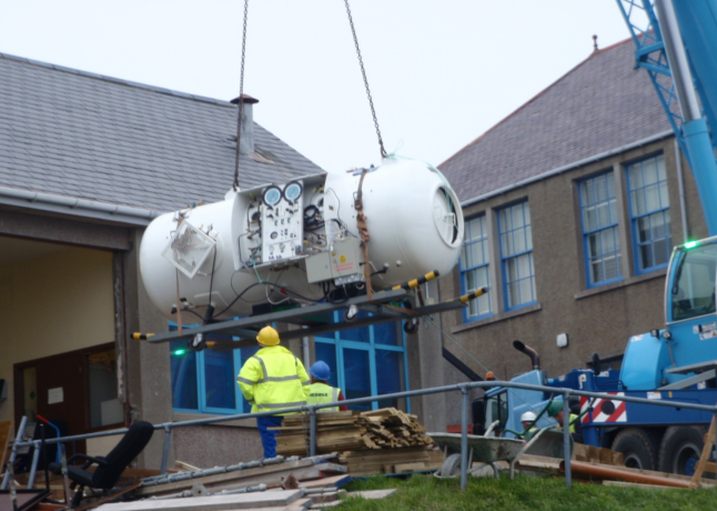 Towards the end of 2008 sufficient funds had been raised by OHT through treatment charges and grants from Orkney Islands Council & NHS Orkney to proceed with the plan. Design specifications were agreed and a supplier – Submarine Manufacturing & Products – identified. Details of the plan to meet NRS criteria were revealed to the audit team on their inspection. The team then informed OHT that the smaller chamber would no longer meet the audit requirements. Although a larger chamber would OHT felt a second chamber was an equally important issue.